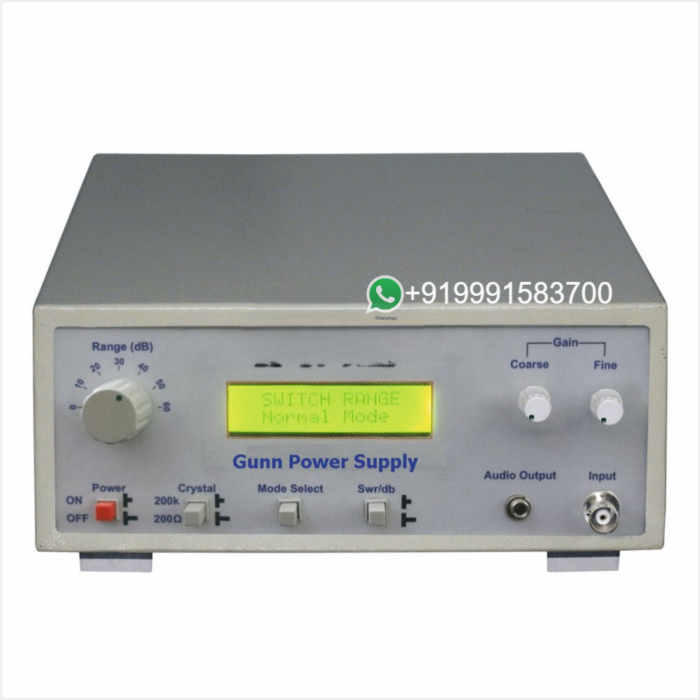 MineĀ Gunn Power Supply is a Microcontroller based Equipment with LCD. A very important feature of this instrument is the simultaneous display of Voltage and Current which is the basic requirement of VI Characteristics experiment. Here different Modulation Modes can be selected with a single switch display on LCD. For PC to PC Data Communication Experiment a Software is provided with this instrument.