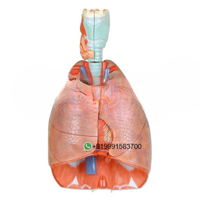 Human Lungs and Heart Anatomy Model Manufacturer, Supplier and Exporter for Biology Lab – An actual size reproduction of the whole respiratory system, dissectible in 4 parts, showing the position of lungs diaphragm and heart, mounted