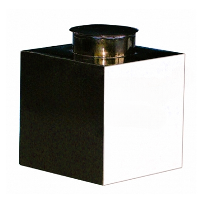 Tin plate box with 130 mm. sides The vertical faces of the box are blackened. Roughened, varnished and polished respectively. The top opening is 75 mm. diameter and is fitted with a lid. The apparatus is filled with water maintained at boiling point by a low Bunsen flame. Infra red sensors may be used to compare the relative radiant heat output from each of the four faces.