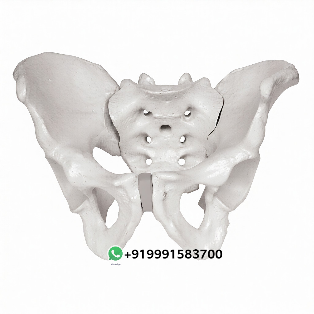 Male Pelvis Manufacturer, Supplier and Exporter for Biology Lab – A complete life size skeleton of a human male pelvis consisting of the pelvic bones (ischium, ilium and pubis), sacrum, coccyx and symphysis.