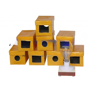 Pin Hole Camera Kit Manufacturer, Supplier and Exporter for Physics Lab – 8 card board boxes with hole, screen and lid, 50 sheets of black paper, 1 lamp, I lamp holder mounted on wooden base and 1 packet of pins.