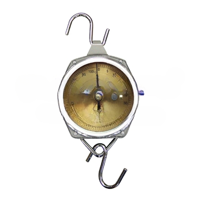 Metal body, it is provided with suspension ring at top and load hook at bottom. Dial dia 15 cm approx. Capacity: 10Kg, 20Kg, 50Kg, 100Kg