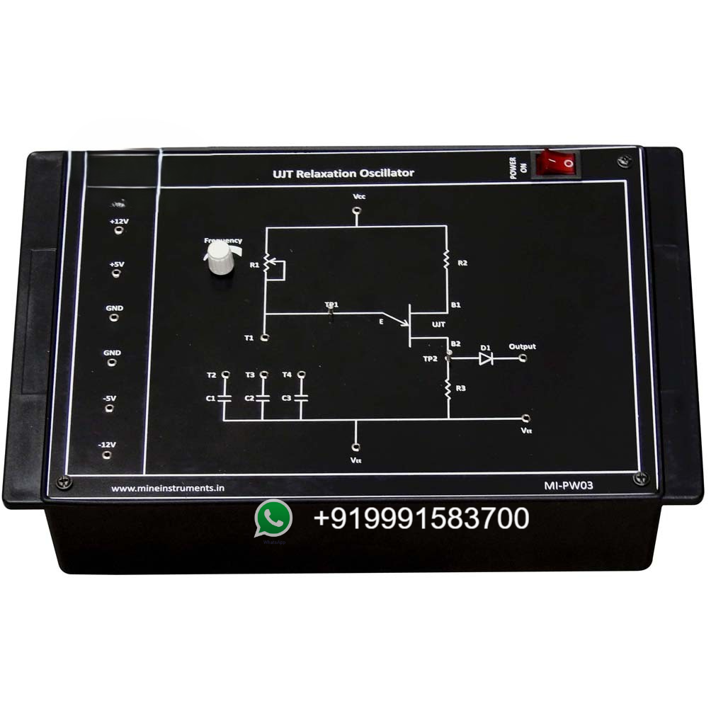 Mine  UJT Relaxation Oscillator UJT Relaxation Oscillator Trainer   has been designed specifically to demonstrate the importance of UJT as Relaxation Oscillation. UJT Relaxation Oscillator trainer is an extremely useful laboratory kit which provides facilities for hand on experience to various experiments in the field of Power Electronic circuit trainer and provides all necessary inputs and connections for student to study UJT Relaxation